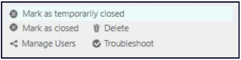 Your dashboard also contains all of the above links for marking your business as temporarily or permanently closed, deleting your listing, managing users, and troubleshooting problems.