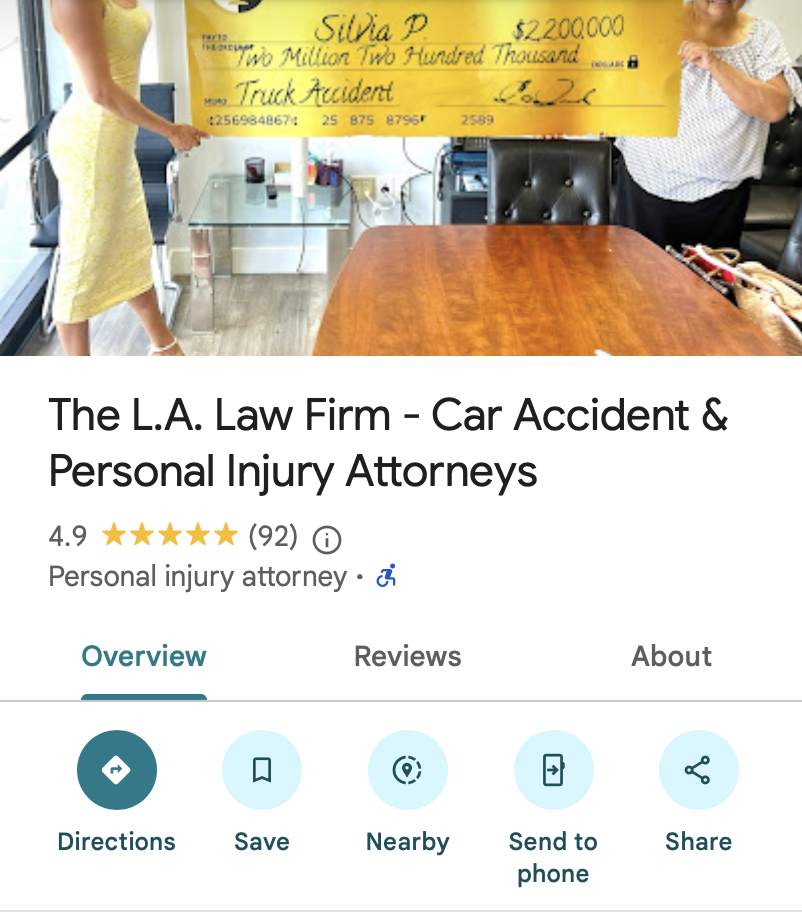 The cons of this: This is one of the most spammable of all Google Business Profile fields. In the above screenshot, if this is your competitor and they aren’t legally named “The L.A. Law Firm – Car Accident & Personal Injury Lawyers” but are outranking you, in part, because they are violating Google’s guidelines, this can be very frustrating. Google wants real-world business names in the title field but they have displayed a lack of seriousness about enforcing this rule over the years. They don’t even assign heavy penalties when businesses are reported and found to be in error, so there’s not much of a disincentive.