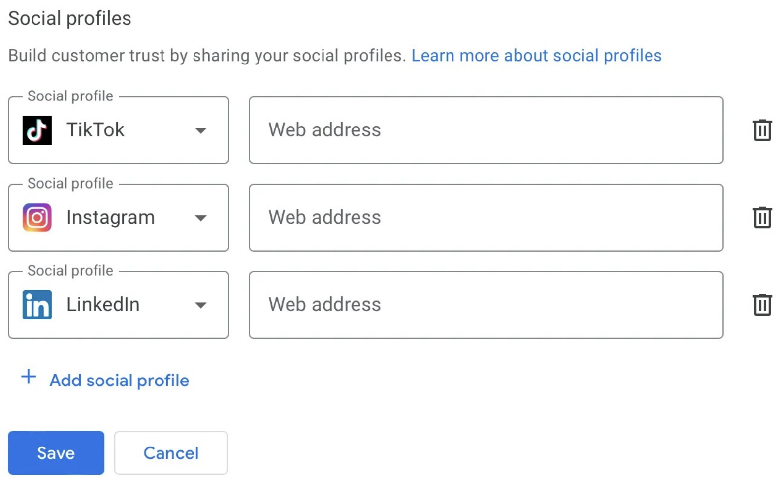 Recently, Google added the ability to add your social media links to your Google Business Profile. This is very valuable because it provides Google with a bunch of additional data about your business that may not be present on your GBP or website.
