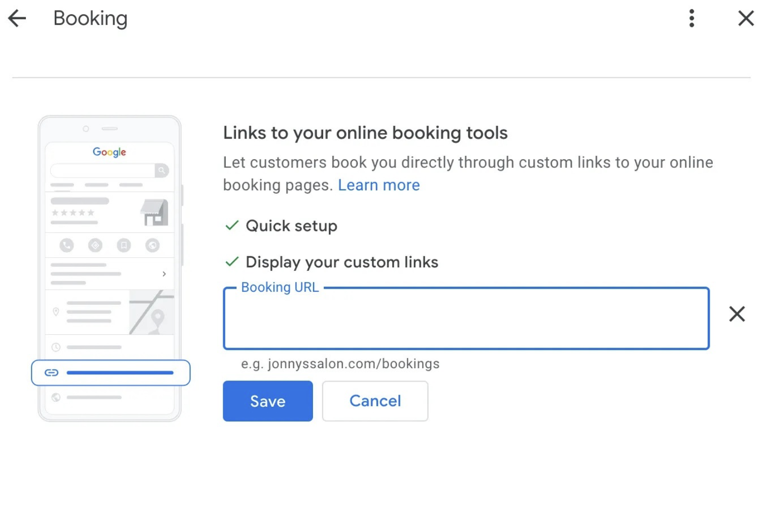 Lots of businesses leave it empty because they don’t have a booking system, but linking to your website’s contact page is totally fine, too.