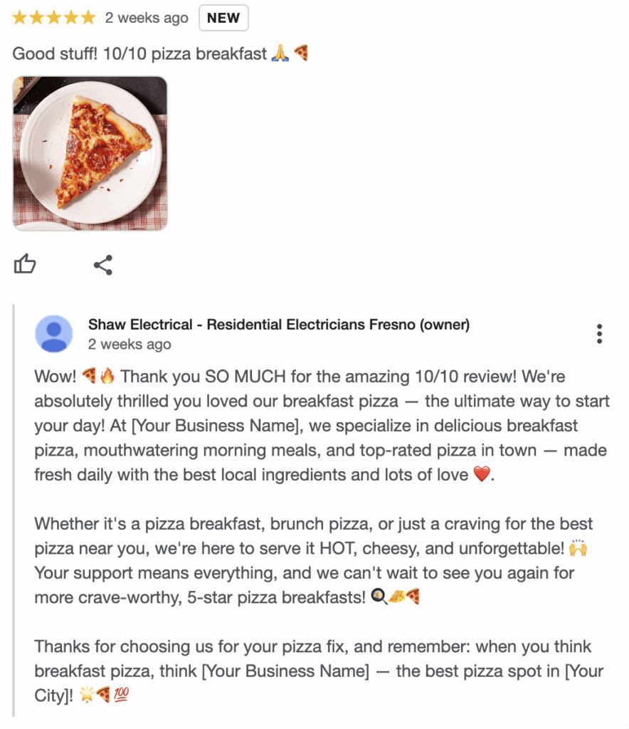 Don’t forget to respond to reviews as well. Reply to your customers and thank them for taking the time to review and help your business. This will not only make the customer feel appreciated and want to come back, but it will also make a great impression on potential customers scrolling through your Profile.