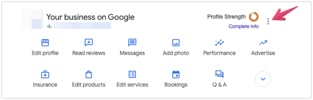To access the settings for your Business Profile, click the three dots in the top right corner of the NMX: