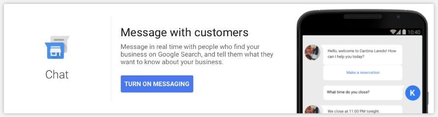 In July 2017, Google started rolling out the Messaging feature in the U.S. on desktop, mobile and the Android search app using SMS and Allo. Messages couldnāt be answered through the Google Business Profile Manager (dashboard) and customers would see a proxy number for the businessās response. It wasnāt very elegant, but it seems it hoped to compete with Facebookās ability to give business owners a direct chat opportunity from their business page to customers.