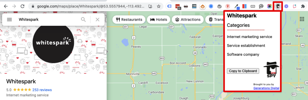 In our test, we found similar businesses in other cities with the Booking feature so we used the GMB Spy chrome extension by George Nenni to quickly identify the categories used and added the relevant categories missing from our test.