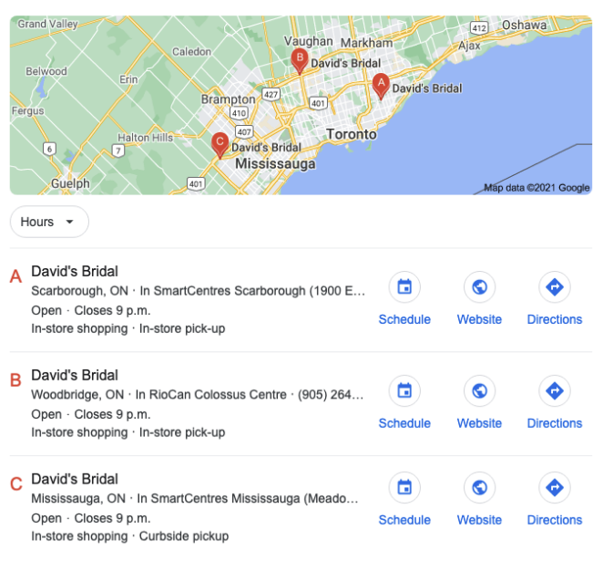 The Booking feature enables the Schedule icon and button that can sometimes be seen in the local pack. Enabling this feature doesn’t always add this icon when your business appears in the local pack though.