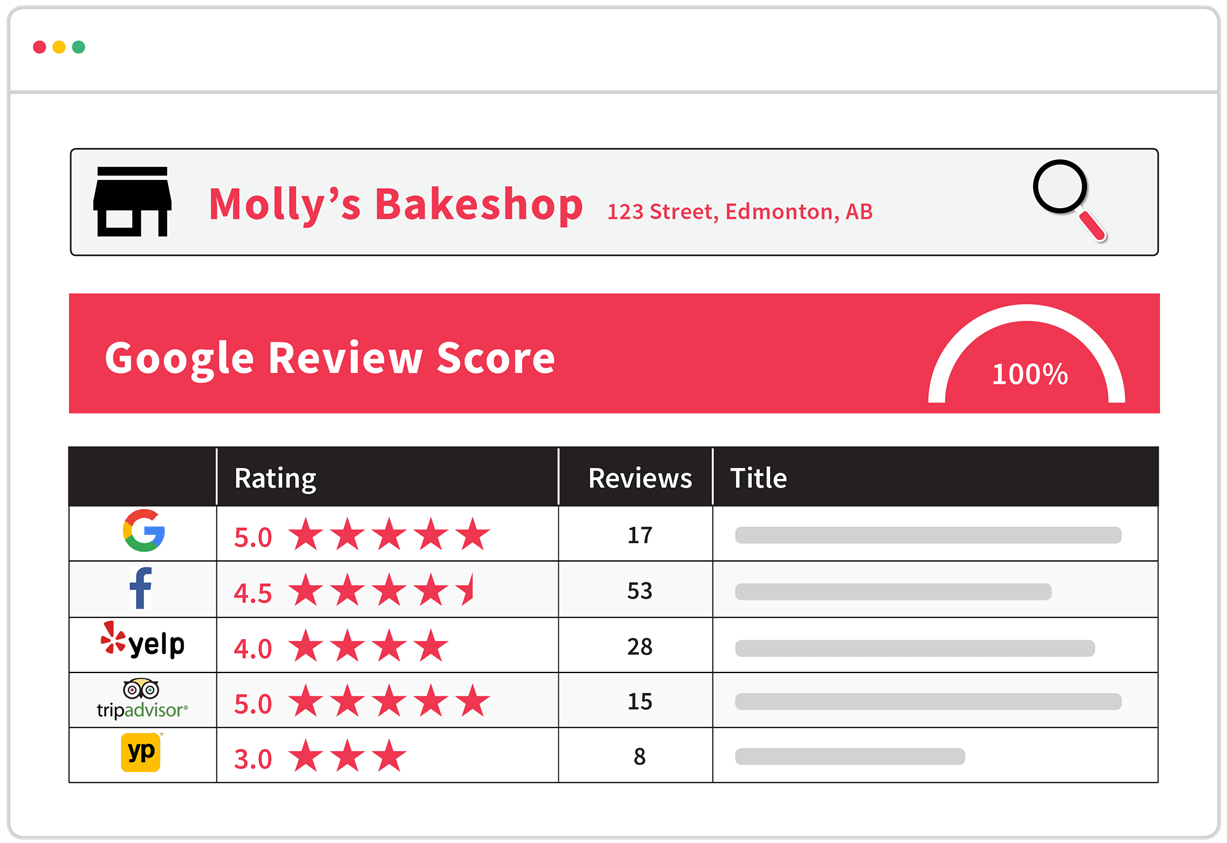 We’ve created a simple and free tool that checks your business’ reviews and ratings across the web. See where you’re doing well, where you need to improve, and how your Google reviews stack up against local competition.