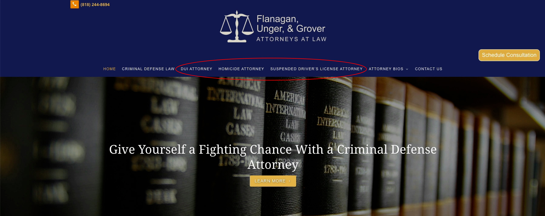 If I was going to rewrite this for the brand, I would say something like: “If you’re looking for the best criminal defense attorney in Glendale, CA, look no further than Flanagan, Unger, and Grover Attorneys at Law.” That simple rewrite has a big impact because now you’ve got “criminal defense attorney in Glendale, CA.”